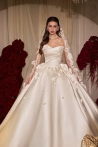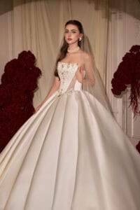 Đội ngũ stylist tại Marie Bridal thường tư vấn phụ kiện dựa trên kiểu váy, gương mặt và concept tiệc để đảm bảo tổng thể hài hòa và phù hợp với từng cô dâu.